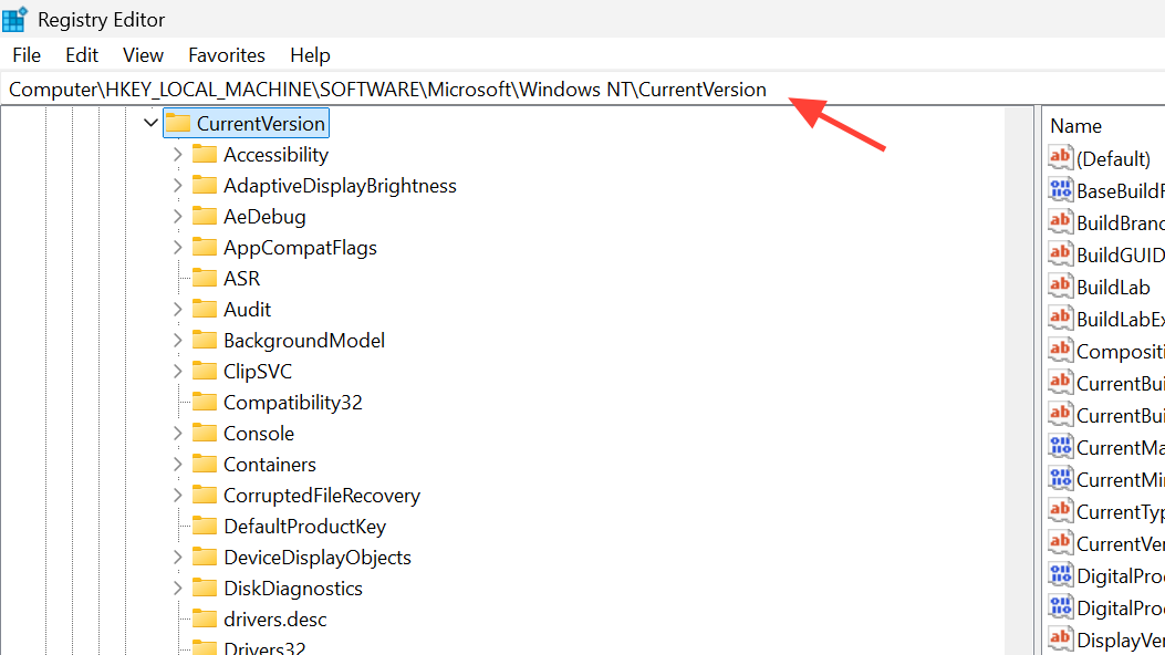 HKEY_LOCAL_MACHINE\SOFTWARE\Microsoft\Windows NT\CurrentVersion