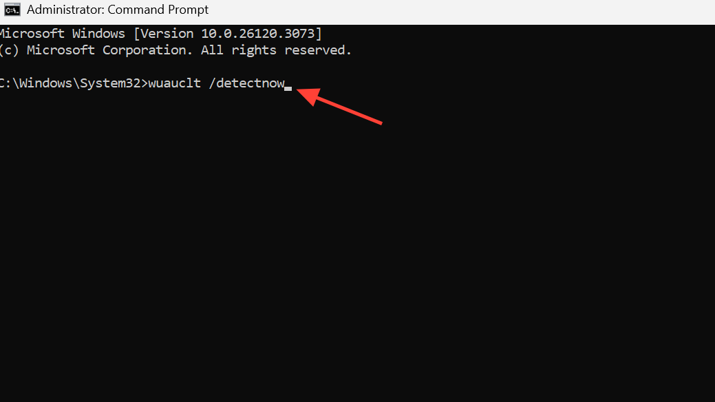 Step 2: Run this command to tell Windows Update to detect updates immediately: