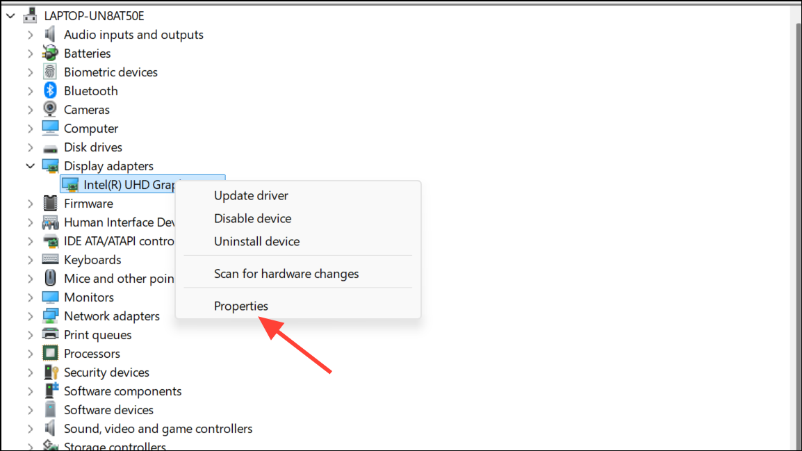 Step 1: Open Device Manager and expand Display adapters. Right-click your GPU and select Properties.