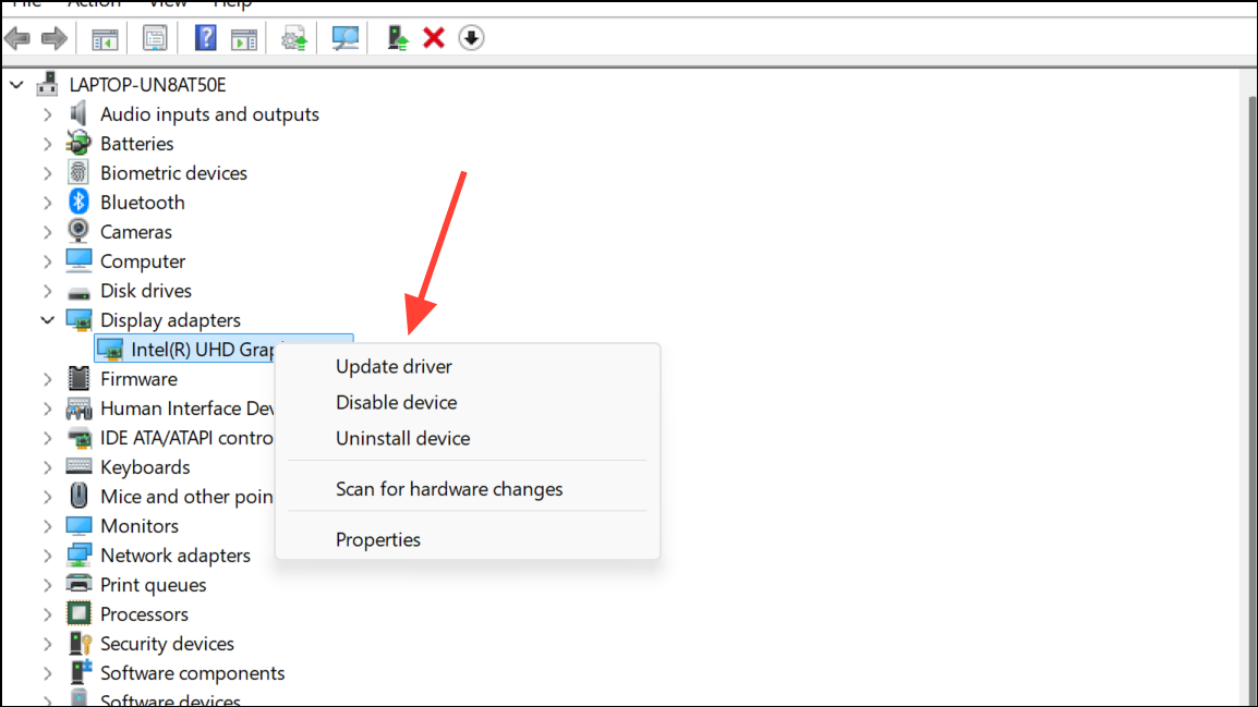 Step 2: Expand the Display adapters section. Right-click your graphics card and choose Update driver.