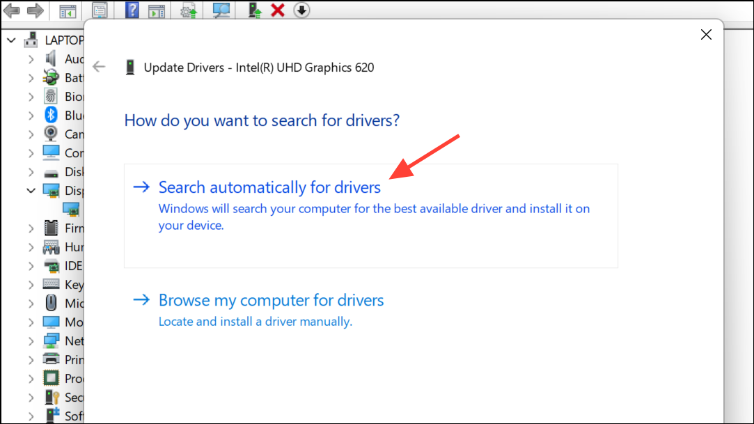 Step 3: Select Search automatically for drivers to let Windows find and install updates. If Windows reports the best drivers are already installed, visit your GPU manufacturer's website (NVIDIA, AMD, or Intel) to download the most recent driver package for your exact model.