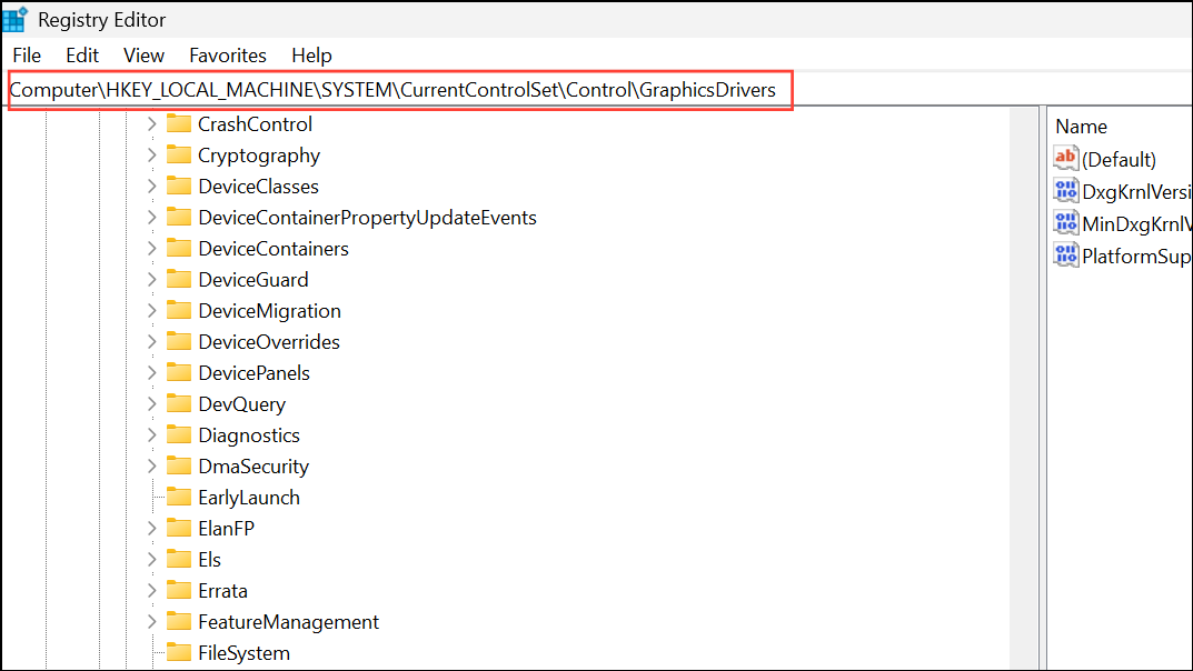 HKEY_LOCAL_MACHINE\SYSTEM\CurrentControlSet\Control\GraphicsDrivers