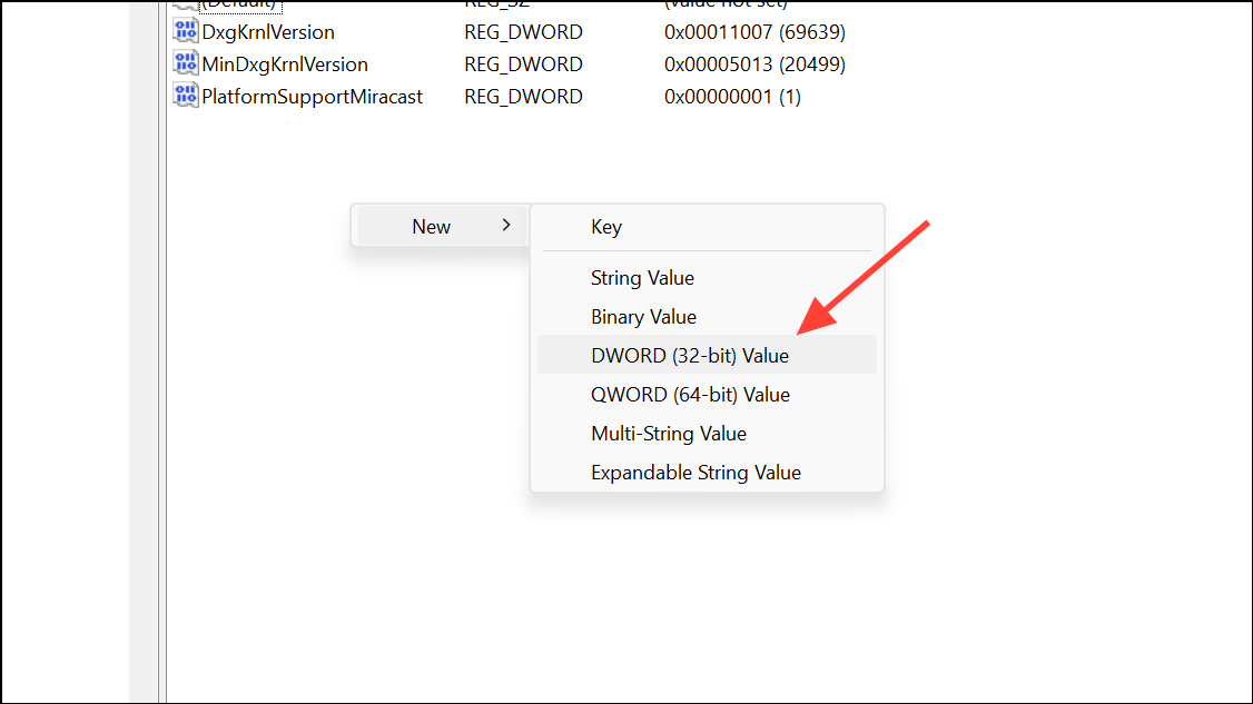 Step 3: In the right pane, right-click and select New > DWORD (32-bit) Value. Name the new value TdrDelay.