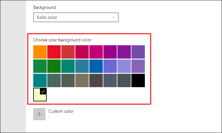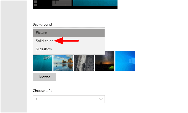In this case, we have selected ‘Solid Color’ in the last step and various options are displayed to chose from. If you select picture, there will be a few options for you chose from or you can browse the system for more.