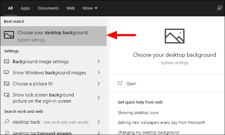 To change the background, enter ‘Desktop Background’ in the ‘Start Menu’ and then launch the setting from the search results.
