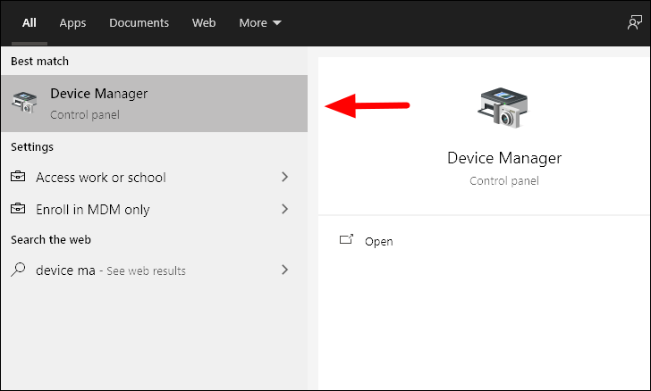 To search for graphic driver updates, you first need to launch the ‘Device Manager’. Search for it in the ‘Start Menu’ and then launch it by clicking on the search result.