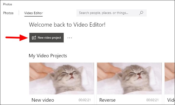 Next, click on ‘New video project’ option near the top-left corner to create a new project.