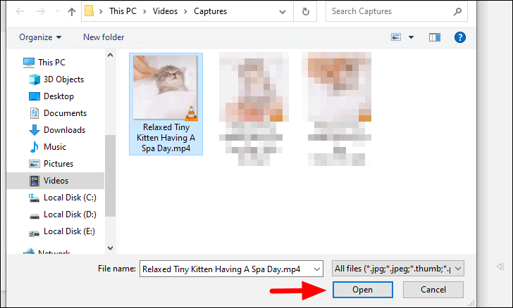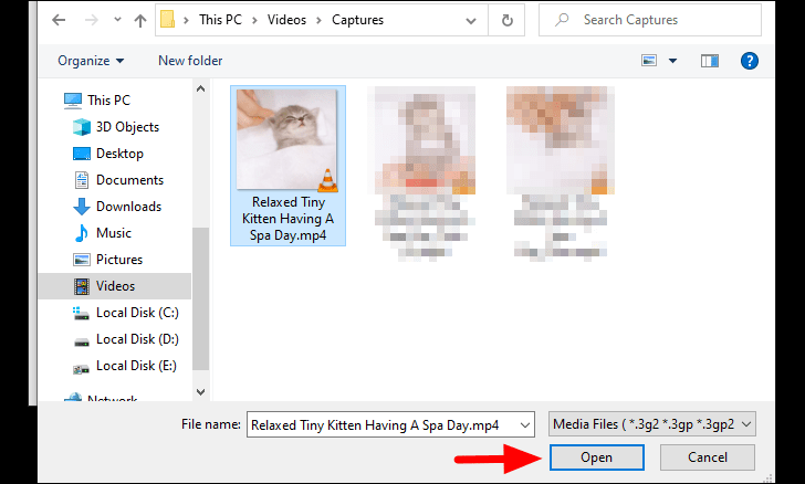 Now, locate and select the video for which you wanted lower resolution and click on ‘Open’ at the bottom.