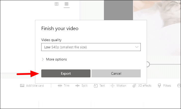 After you have selected a lower resolution, click on ‘Export’.