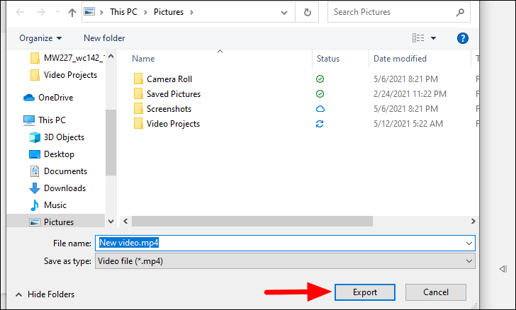 Now, browse and chose the location where you want to save the new video with lower resolution and click on ‘Export’ at the bottom.