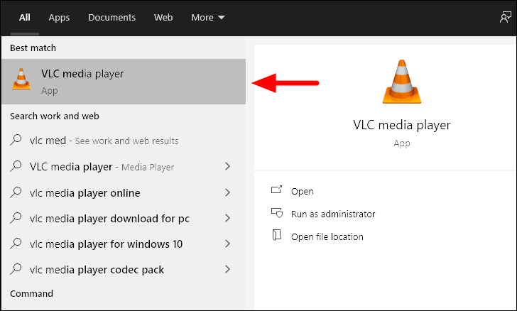 Search for ‘VLC Media Player’ in the ‘Start Menu’ and then launch the app by clicking on the search result.