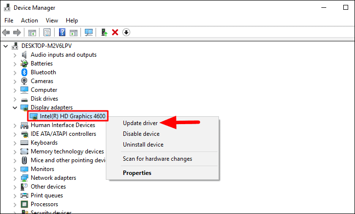 Next, right-click on the graphics drivers and select ‘Update driver’ from the context menu.