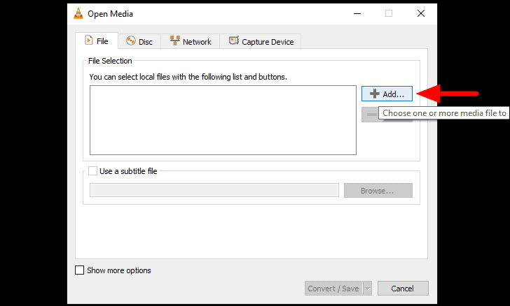 After you have added a video, click on ‘Convert/Save’ at the bottom to convert the format into a compatible one.