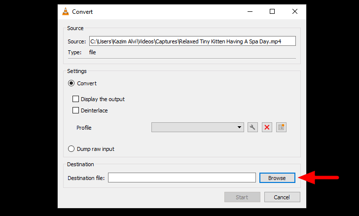 The ‘Convert’ window will launch, click on the ‘Browse’ at the bottom to select a destination folder for the formatted video.