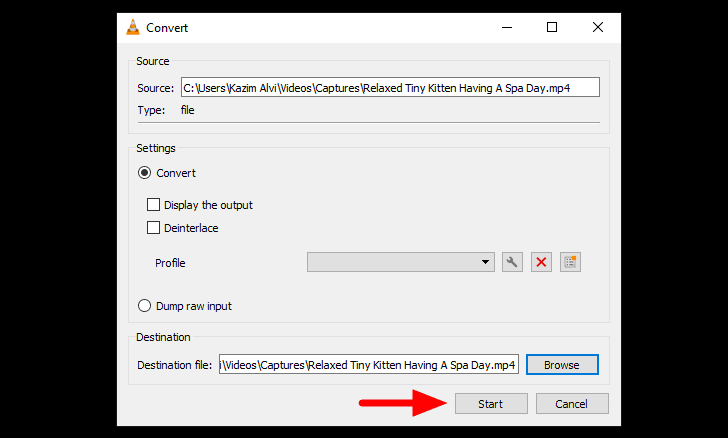 After you are done selecting a destination folder, click on ‘Start’ at the bottom to start the conversion process.