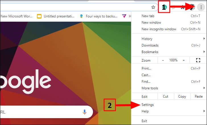 To modify the hardware acceleration for Google Chrome, click on the ellipsis on the top-right corner of the screen. Next, select ‘Settings’
