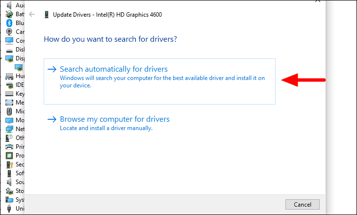 The ‘Update Driver’ window will open where you will find the options to either let the Windows search for the driver or you can browse and manually install it, in case you have already downloaded the driver. If you are not too tech-savvy, it’s recommended that you select the first option. Windows will now look for the driver and install it, in case an updated version is available.