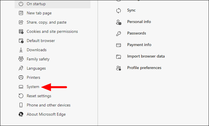 Now, click on the ‘System’ tabs from the list of options on the left.