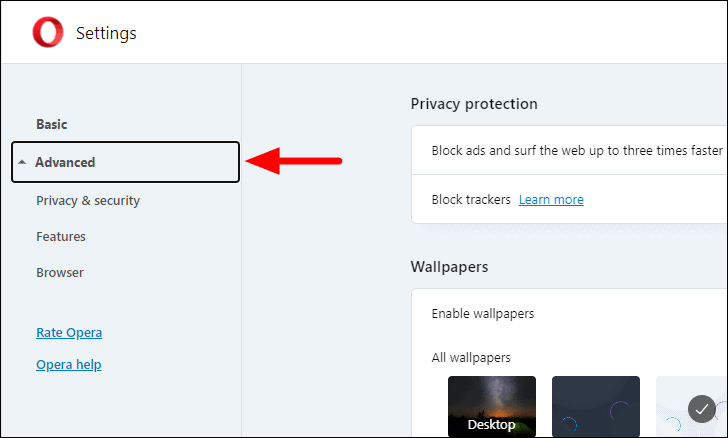 Next, click on the ‘Advanced’ option at the left to jump to the advanced settings.