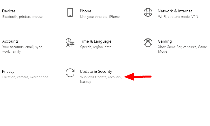 To search for updates, press WINDOWS + I to launch system ‘Settings’ and then select ‘Update & Security’ from the options.