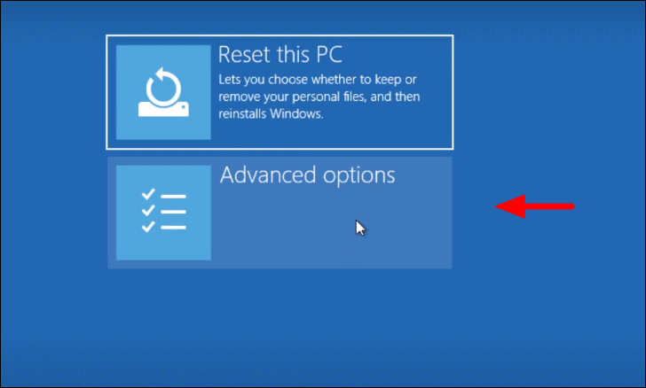 Now, select ‘Advanced options’ on the next screen.