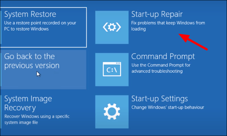 If none of the above methods have worked for you, it’s time you do a system repair. This option can be found in the Windows Recovery Environment. Start-up Repair looks for problems that are preventing Windows from functioning and automatically fixes it.