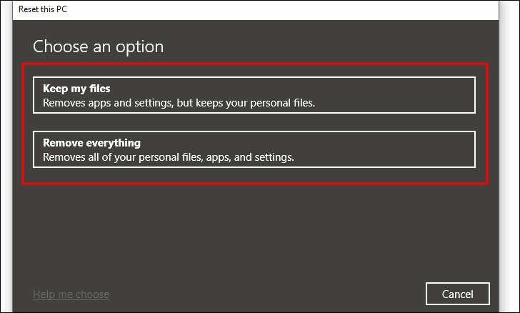 If none of the above fixes were able to resolve the ‘WDF_VIOLATION’ error, the last option that you have is to reset the Windows. While resettling the Windows, you have the option to either keep the files while removing the programs and settings or to completely wipe the PC.