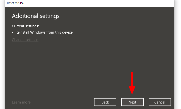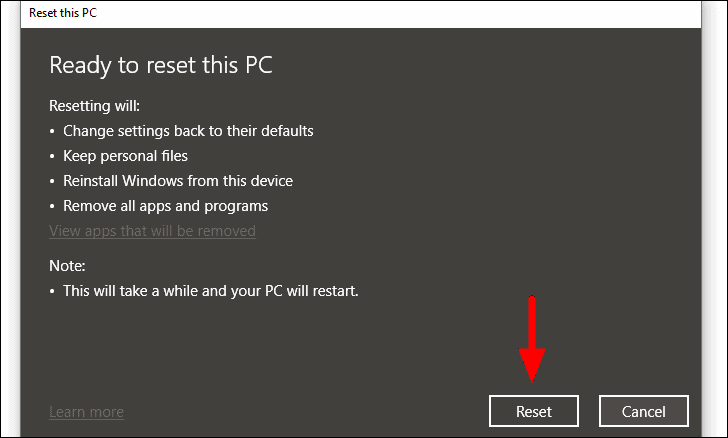 Finally, click on ‘Reset’ at the bottom. It will take some time for the Windows to reset and your computer will boot several times during the process.