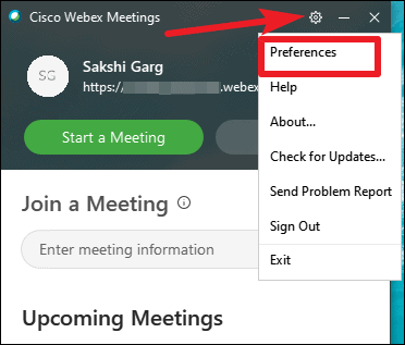 Check your Webex Preferences