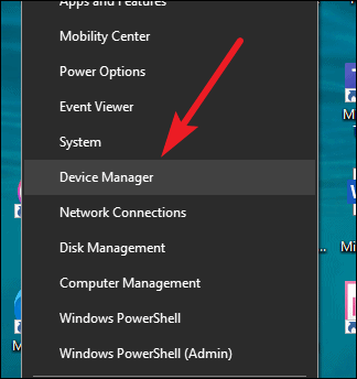 Right-click on the Start Menu button, and select ‘Device Manager’ from the context menu.