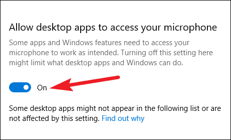 Now, scroll down further and go to the ‘Allow Desktop Apps to access your Microphone’ setting. As Webex is a desktop app and not a Microsoft Store app, this setting needs to be on as well for it to able to access the microphone. Click on the toggle to change it to on if it wasn’t.