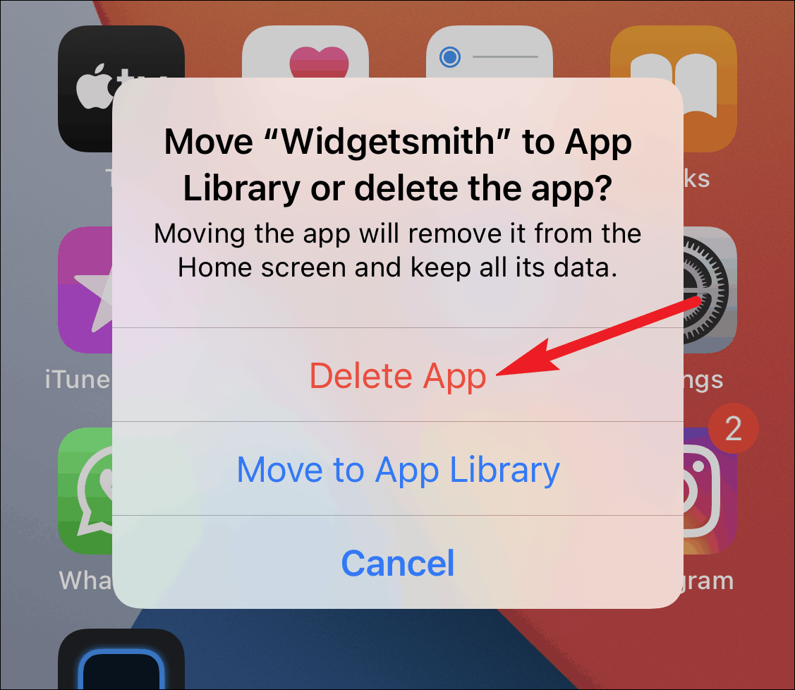 A ‘Move to the Library or Delete’ dialog box will appear. Select ‘Delete App’ from the options.