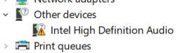 - Look for a High Definition Audio Device with a yellow exclamation mark.