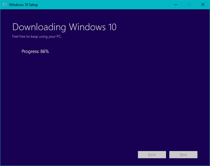 The Media Creation Tool will now download the Windows 10 1809 update. Depending on your internet connection, it may take some time.