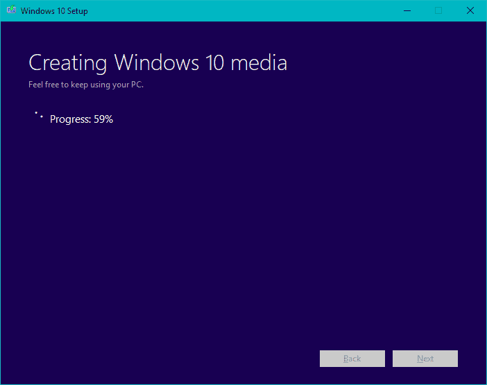 Once the tool finishes downloading Windows 10 October update, you’ll see the Creating Windows 10 media screen. Wait it out…