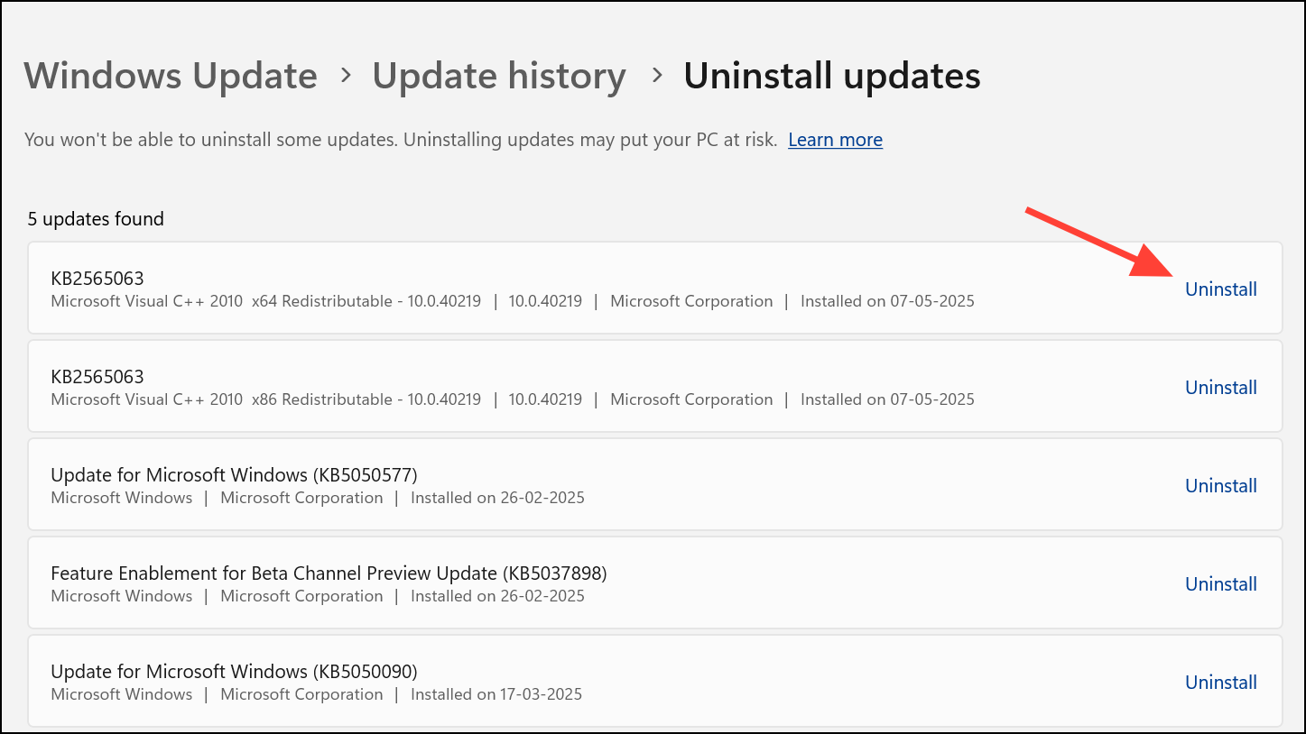 Uninstall Recent Windows Updates