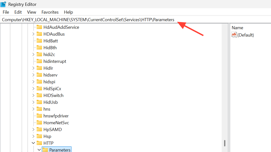 Step 2: Navigate to HKEY_LOCAL_MACHINE\System\CurrentControlSet\Services\HTTP\Parameters. This key controls HTTP.sys behavior.