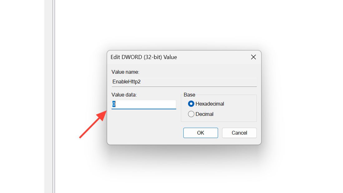 Step 2: Create a DWORD (32-bit) Value named EnableHttp2 and set it to 0. This turns off HTTP/2 for IIS.
