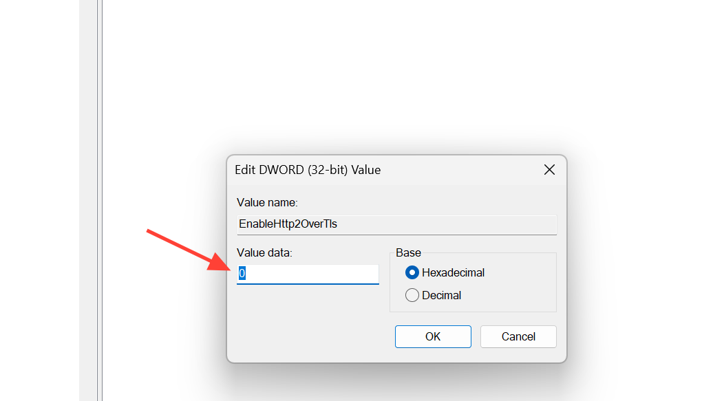 Step 3: Create a new DWORD (32-bit) Value named EnableHttp2Tls. Set its value to 0 to disable HTTP/2 over TLS on localhost.