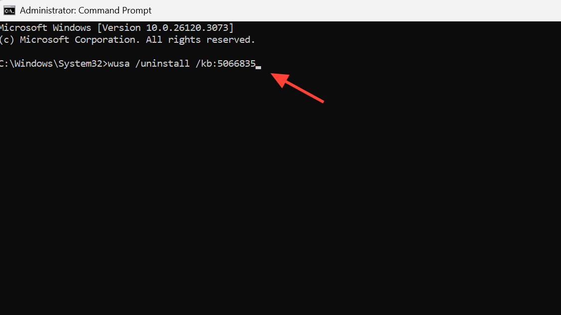 Step 1: Open an elevated Command Prompt (Run as administrator). Use Windows Update Standalone Installer to remove KB5066835.