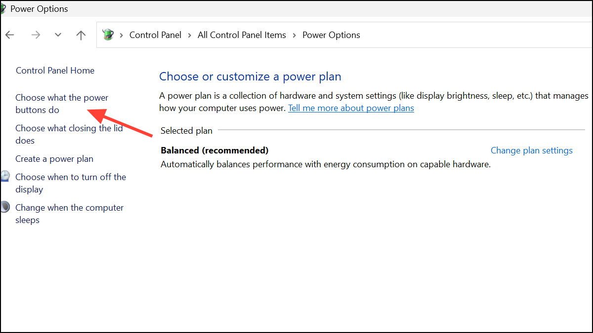 Step 2: Click Power Options. In the left panel, select Choose what the power buttons do.