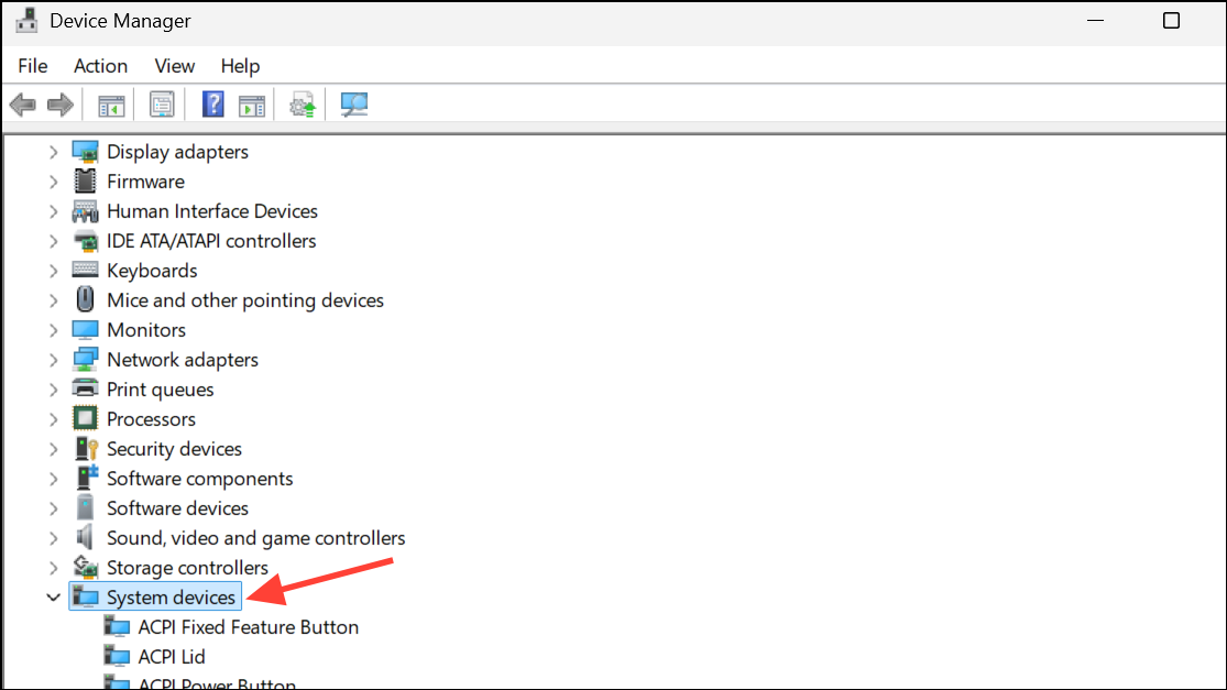 Step 2: Expand System Devices and Network Adapters.
