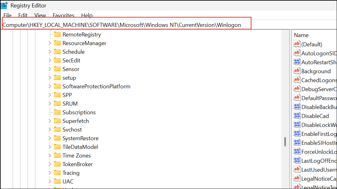 Computer\HKEY_LOCAL_MACHINE\SOFTWARE\Microsoft\Windows NT\CurrentVersion\Winlogon.