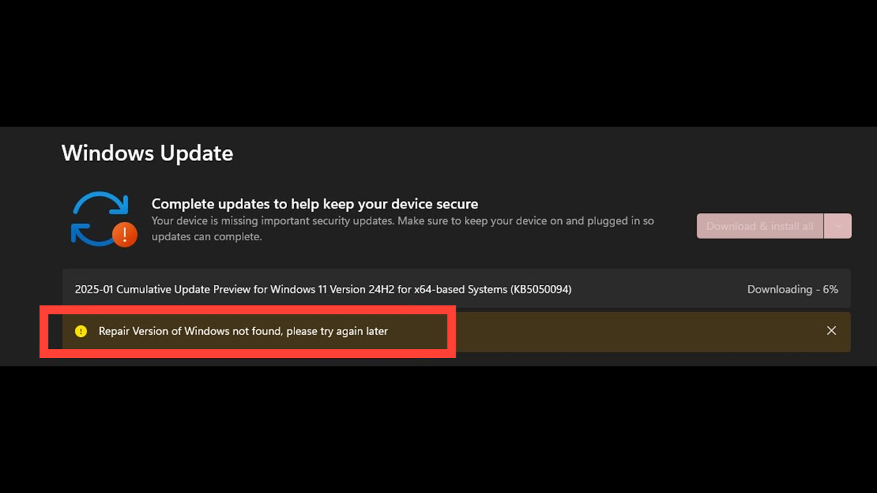 | KB5050094 | 2025-01 Cumulative Update Preview, 24H2 | 0x800f0983, 0x80070306 | Multiple errors observed on the same device |