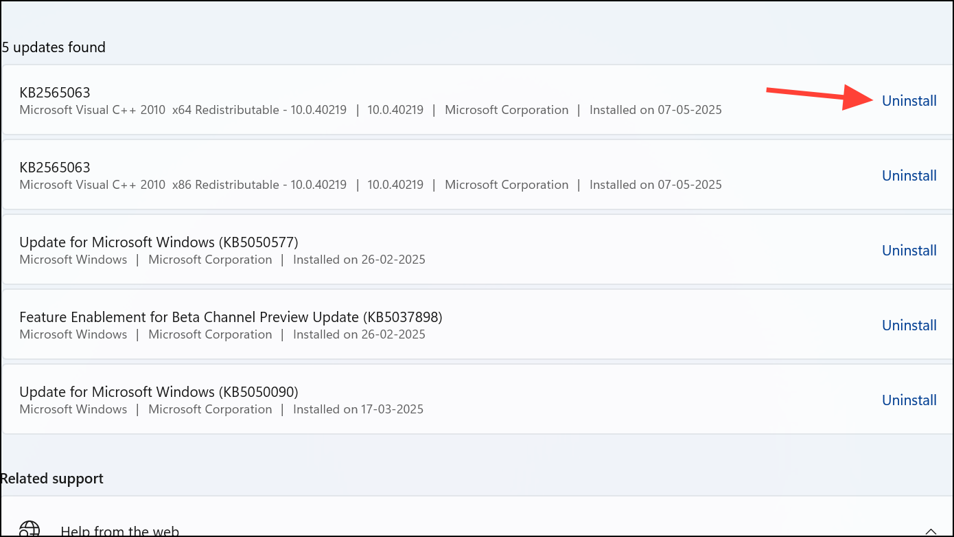 Step 4: Identify and remove the problematic update, then restart your PC and retry the update process.