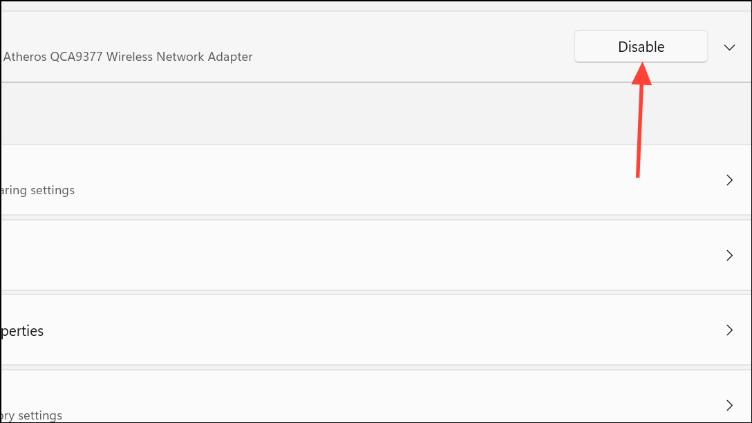 Step 2: Under Network adapters, select your active connection (Wi-Fi or Ethernet), then click Disable. Wait 10–30 seconds, then click Enable to re-activate the adapter.