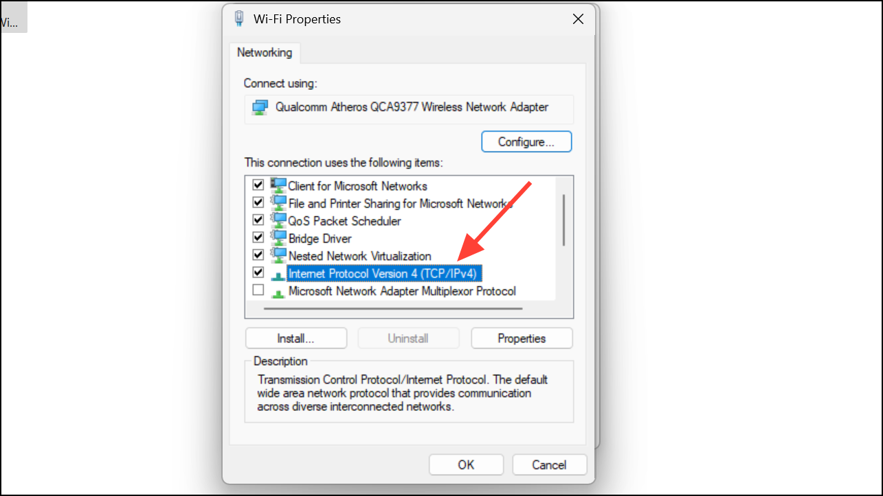 Step 2: Right-click your active network adapter and select Properties. Double-click Internet Protocol Version 4 (TCP/IPv4).