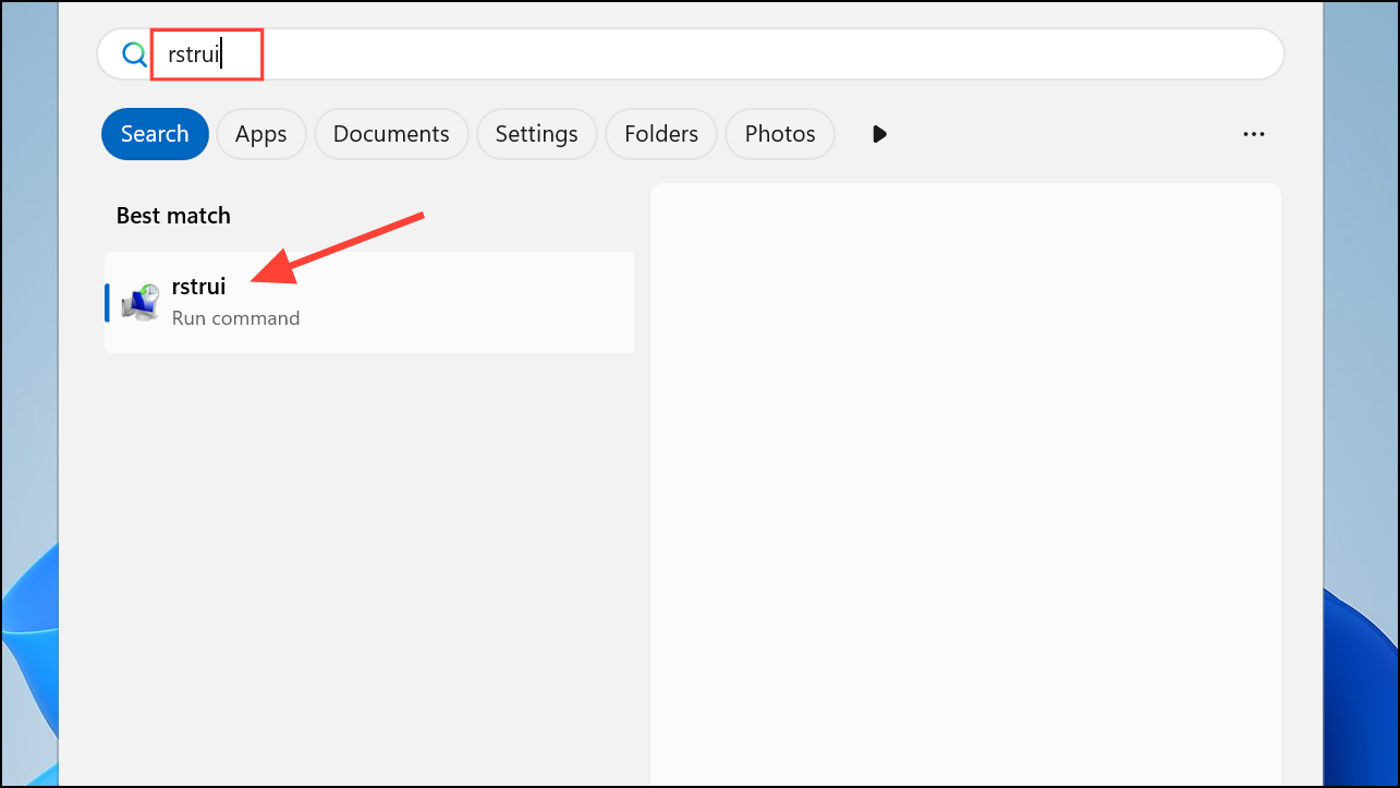Step 1: Type rstrui in the Windows search box and press Enter to launch System Restore.