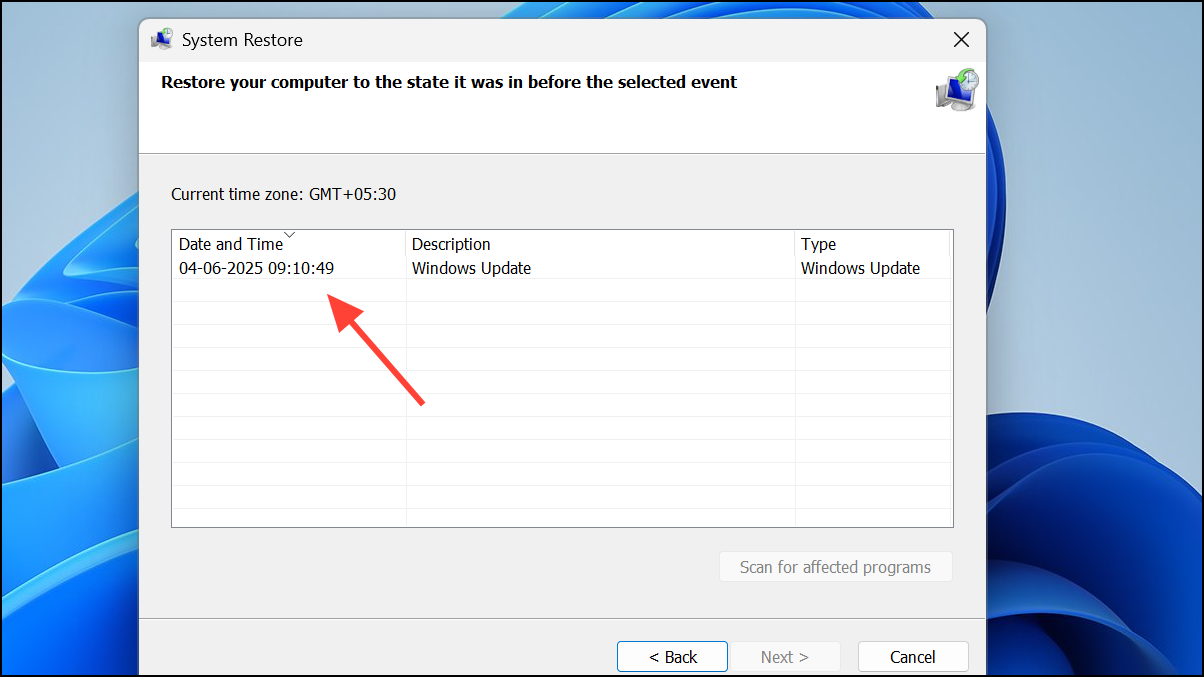Step 2: Select a restore point dated before the error first appeared. Follow prompts to complete the restoration.