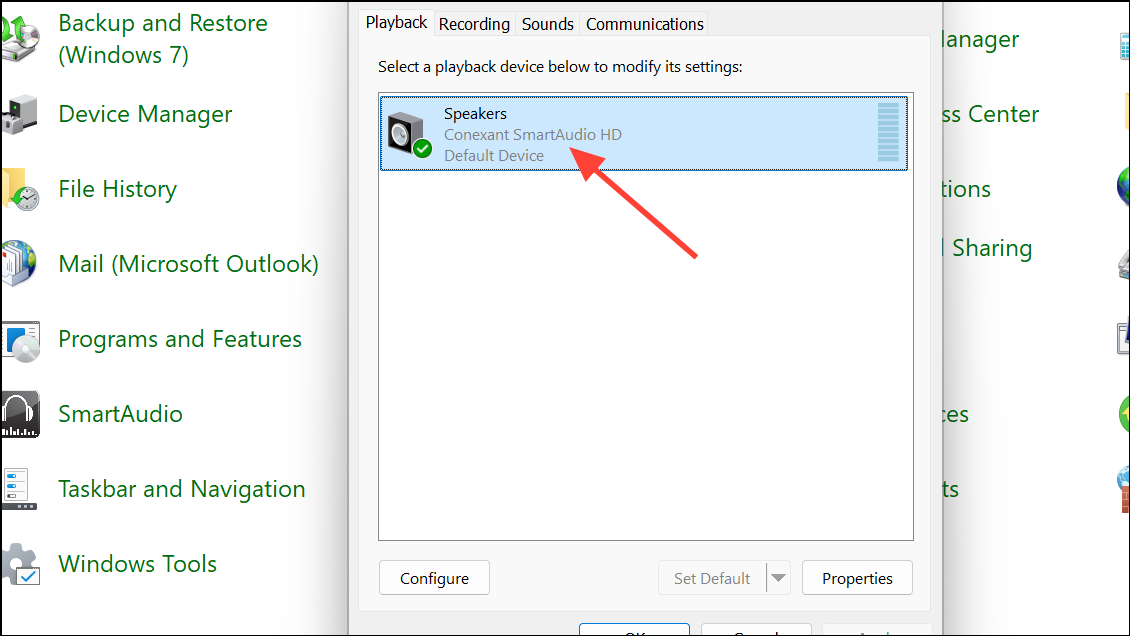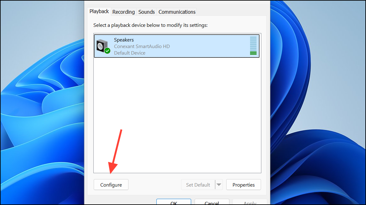Step 2: Click Configure, choose your desired channel layout (such as 5.1 Surround or Stereo), and complete the wizard.